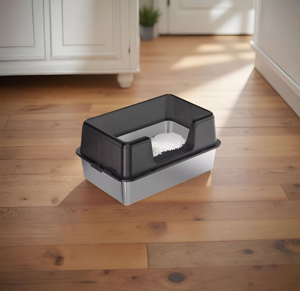 Le Bac à Litière en Acier Inoxydable offre un espace propre, durable et facile à entretenir pour votre chat.